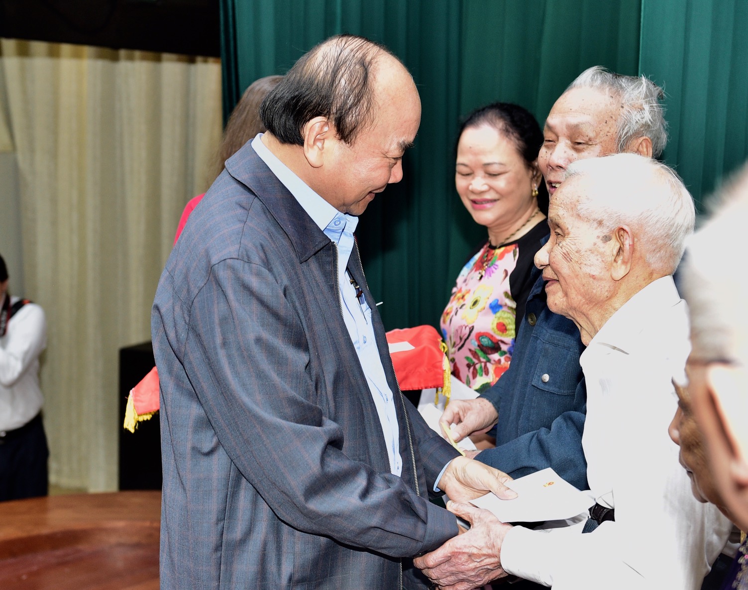 | Thủ tướng Nguyễn Xuân Phú trao quà cho các gia đình có hoàn cảnh khó khăn, cụ cao niên trên địa bàn, các cháu học giỏi, gia đình văn hóa tiêu biểu. |