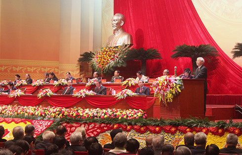 | KPV-Generalsekretär Nguyen Phu Trong legt den politischen Bericht beim 12. Parteitag vor. (Foto: nongnghiep.vn) |