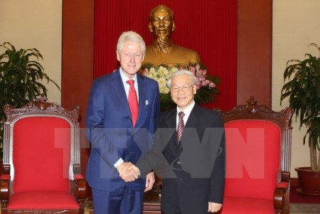 | KPV-Generalsekretär Nguyen Phu Trong (l.) und US-Präsident Barack Obama beim Gespräch im Weißen Haus. (Foto: VNA) |