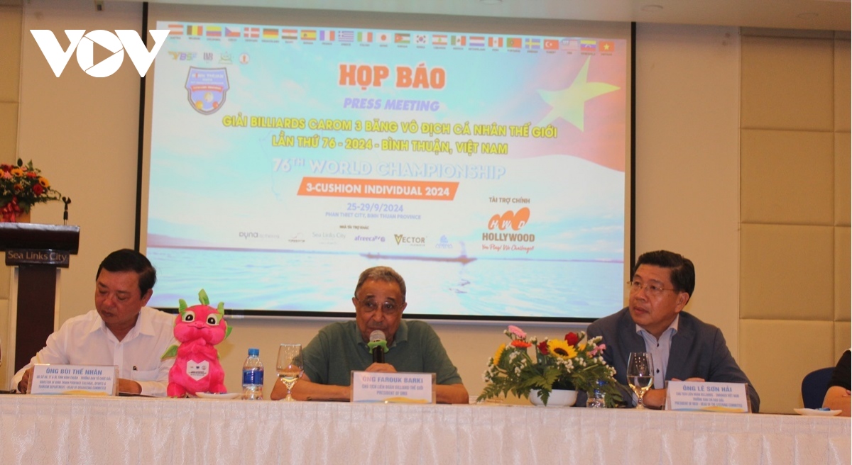 Die Pressekonferenz über die Weltmeisterschaft im Dreiband-Karambolage-Billard in Binh Thuan. (Foto: VOV) |