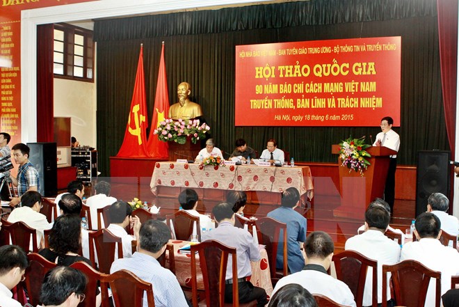 (VOVworld) – Anlässlich des 90. Feiertags der vietnamesischen Revolutionspresse am 21. Juni hat ein Seminar über die Entwicklung der Presse am Donnerstag in Hanoi stattgefunden. Mit der Entwicklung der vier Medienarten hat die Presse einen wichtigen Beitrag zu den Erfolgen des Erneuerungskurses Vietnams geleistet. Die Presse hat Korruptionsfälle sowie negative Erscheinungen aufgedeckt und gegen sie und Sozialübel gekämpft. Die Presse beteiligt sich am Kampf zum Schutz der Hoheit über die Inseln und das Meer sowie gegen feindliche Standpunkte. Die Vorträge auf dem Seminar betonten die Rolle, die Fertigkeiten und die Verantwortung der Journalisten. Sie schlugen auch Maßnahmen vor, um die Qualität der Presse zu verbessern. Der Vizeleiter des Zentralkomitees für Aufklärung und Erziehung Nguyen The Ky sagte, Journalisten sollten neben der Vertiefung der Fachkenntnisse und der Kenntnisse in Politik und Kultur Berufsethos zeigen.