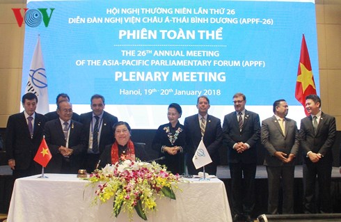 Auf der APPF-26-Konferenz wurden außerdem die aktuellen Themen wie beispielsweise der Kampf gegen den Terrorismus und die transnationale Kriminalität, der Klimawandel, die Lebensmittelsicherheit und die nachhaltige Landwirtschaftsentwicklung besprochen. Nach dieser Konferenz würden die Parlamente der APPF-Mitgliedssländer die verabschiedeten Verpflichtungen umsetzen, so die vietnamesische Parlamentspräsidentin Nguyen Thi Kim Ngan: