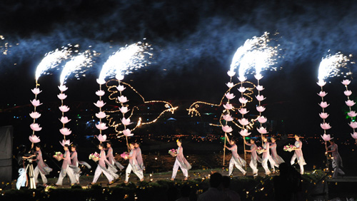 (VOVworld) – Am Sonntagabend ist die Abschlussfeier des achttägigen Hue-Festivals der zentralvietnamesischen Stadt Hue veranstaltet worden. Die Feier wurde eingeleitet mit Trommelschlägen von Musikern der Oper für traditionelle Königshofkunst aus Hue. Es folgten Frühlingstänze, begleitet von Liedern über Hue. Zum Programm gehörten außerdem ein Auftritt der mongolischen Zirkuskünstler und Tänze aus Russland und Inselstaat Kuba.