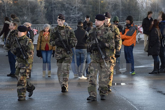 | Französische Soldaten überwachen Straßen in Paris. (Foto: AFP/VNA) |