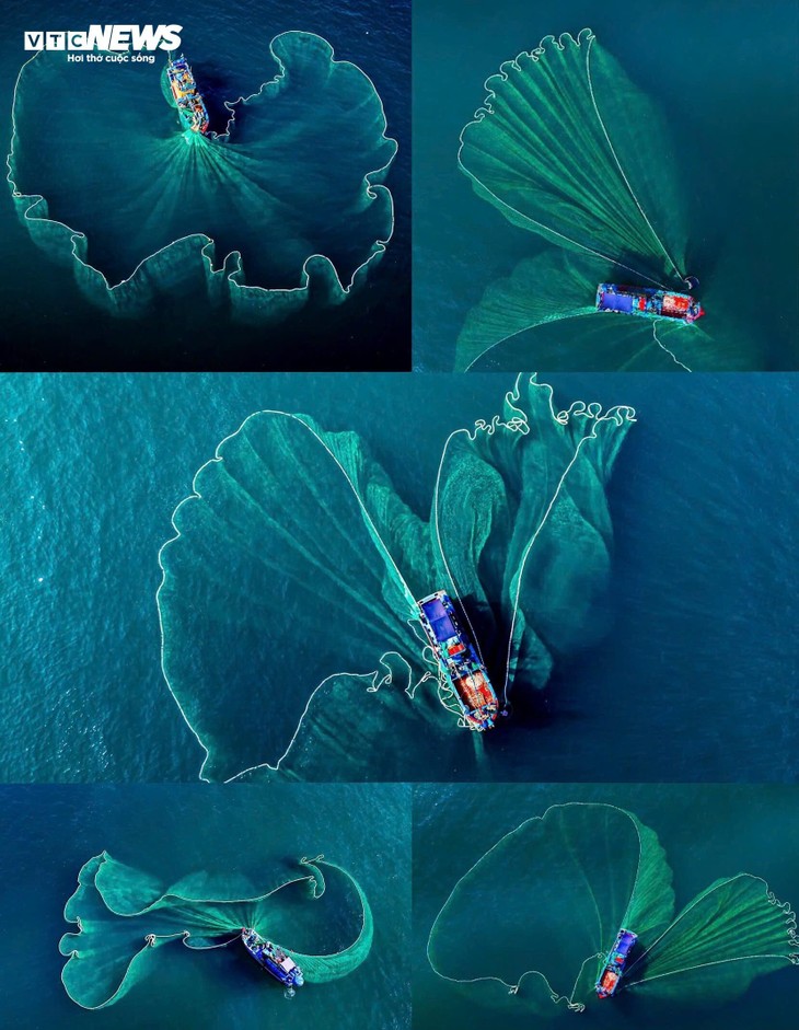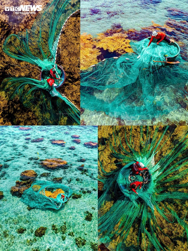 In den Fischerdörfern von Binh Dinh kann man leicht erkennen, wie Fischer mitten im Ozean ihre Netze auswerfen, um Bilder zu malen, so poetische Bilder der Arbeit schaffen.
