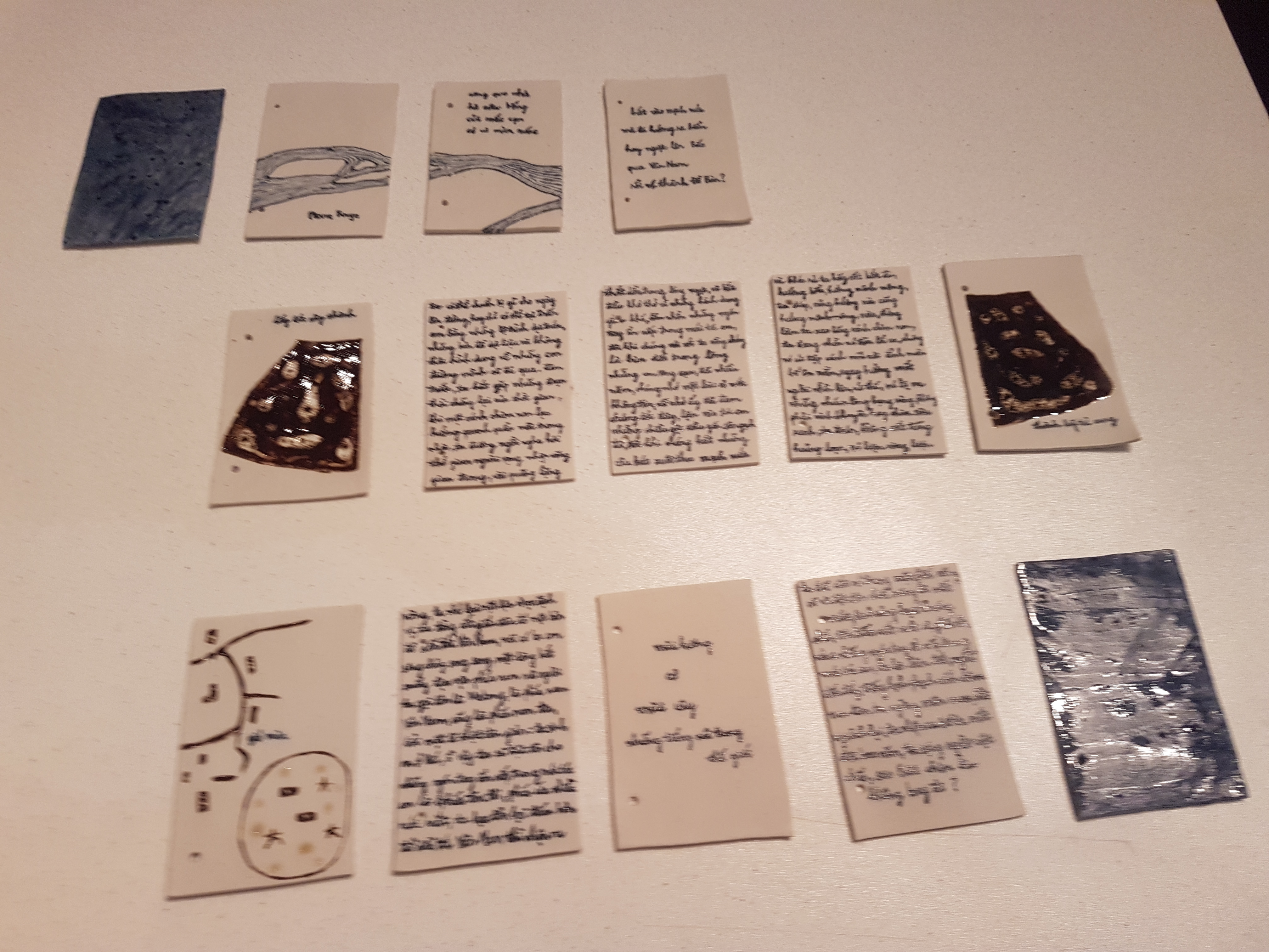 (VOVWORLD) - Die Ausstellung und Buchvorstellung „ich schreibe (auf Vietnamesisch)“ von 20 jungen vietnamesischen Autorinnen und Autoren hat gerade im Goethe Institut Hanoi stattgefunden. Das Buch ist das Ergebnis der Zusammenarbeit eines Jahres von Autoren bei einem Workshop. Sie lasen gemeinsam einige Werke von vietnamesischen und ausländischen Dichtern und Schriftstellern und diskutierten darüber. Danach haben sie selbst ihre Gedichte und Beiträge geschrieben und sie gemeinsam in einem Buch herausgegeben. Parallel dazu haben sie zusammenhängende Kunstwerke geschaffen, die sie gemeinsam mit dem Buch ausstellen.