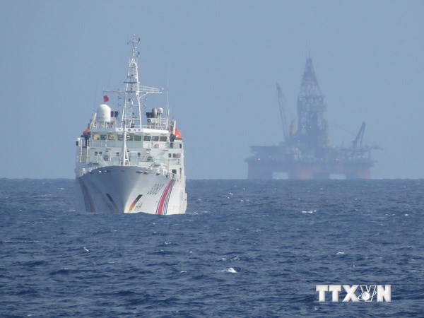 | Ein Foto über die illegale Verankerung der chinesischen Bohrinsel im vietnamesischen Meeresgebiet. (Foto: VNA) |