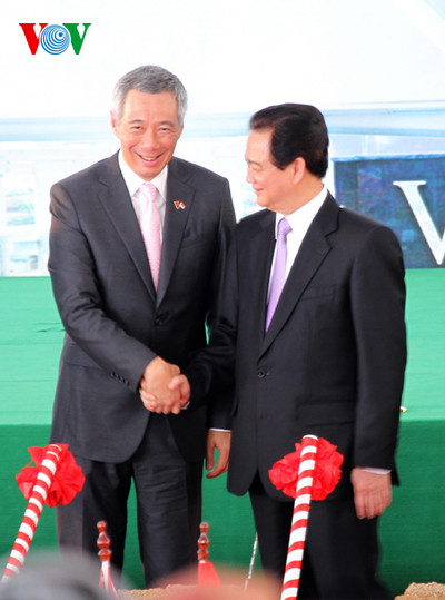(VOVworld) - Der Bau des Industrie- und Wohnungskomplexes VSIP Quang Ngai ist am Freitag im Kreis Son Tinh in der zentralvietnamesischen Provinz Quang Ngai gestartet worden. Es handelt sich hierbei um die fünfte vietnamesisch-singapurische Industriezone in Vietnam. Beim Spatenstich betonte Premierminister Nguyen Tan Dung, der Bau des Industrie- und Wohnungskomplexes Quang Ngai sei von großer Bedeutung, da er am 40. Jahrestag der Aufnahme diplomatischer Beziehungen zwischen Vietnam und Singapur stattfinde. Er forderte die Behörden der Provinz Quang Ngai dazu auf, mit dem Hauptinvestor des Baus eng zu kooperieren. Beide Seiten sollten moderne Techniken anwenden, die Umwelt schützen und die Lebensqualität der Bewohner beachten.