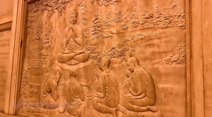 | Die Wände in der Pagode wurden mit Bildern von Buddha verziert. (Foto: vietnamplus.vn) |