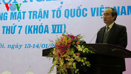 | Der Präsident der vietnamesischen vaterländischen Front Nguyen Thien Nhan. |