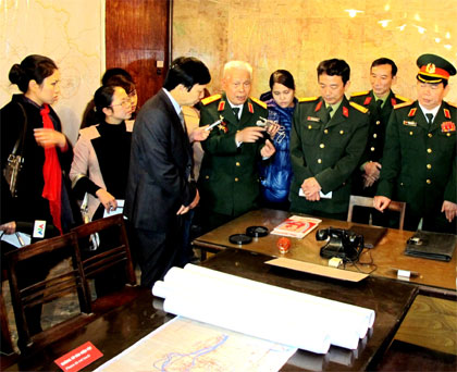 | Generalmajor Nguyen Van Ninh erzählt den Besuchern über die im Bunker stattgefundenen Tätigkeiten vor 40 Jahren. (Foto: qdnd.vn) |