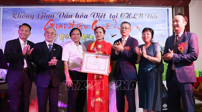 Der vietnamesische Botschafter in Deutschland Vu Quang Minh (3.v.r) gratuliert zu dem 10. Jubiläum des vietnamesischer Kulturraums in Deutschland. (Foto: VNA) |
