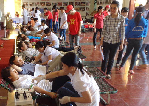 Viele Menschen spenden Blut beim Neujahrsfest Tet. |