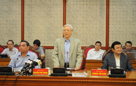 | KPV-Generalsekretär Nguyen Phu Trong beim Treffen mit Behörden der Stadt Da Nang. (Foto: danang.gov.vn) |