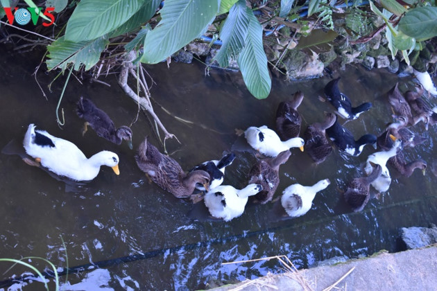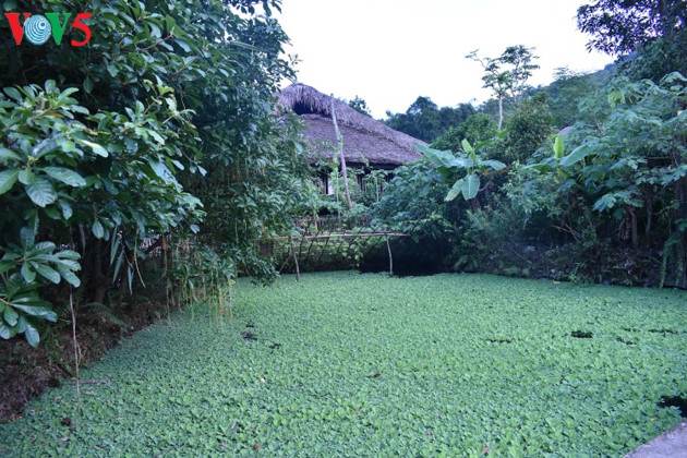 | In der Nähe jedes Pfahlhauses im Dorf Tha befindet sich ein kleiner Teich. |