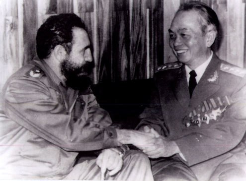 | General Vo Nguyen Giap trifft Staatspräsident Fidel Castro bei einem Kuba-Besuch. |