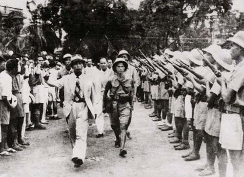 | Am 26. August 1945 nahm Oberbefehlshaber Vo Nguyen Giap zum ersten Mal eine Parade in Hanoi ab. |