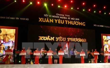 Um das Ziel, dass alle Bürger das Tetfest feiern können, umzusetzen, forderte der Premierminister das Ministerium für Arbeit, Kriegsinvaliden und Sozialfragen sowie die Volkskomitees aller Städte und Provinzen dazu auf, arme Menschen und Menschen mit Verdiensten ausreichend zu unterstützen. Das Ministerium für Arbeit, Kriegsinvaliden und Sozialfragen gab 16,2 Millionen Euro für Geschenke zum Tetfest für Angehörige von Menschen mit Verdiensten aus. Außerdem forderte der Premierminister das Finanzministerium auf, fast eintausend Tonnen Reis für arme Menschen einiger Provinzen für das Tetfest 2015 zu Verfügung zu stellen. Dazu der Mitarbeiter des Ministeriums für Arbeit, Kriegsinvaliden und Sozialfragen, Nguyen Ngoc Toan: