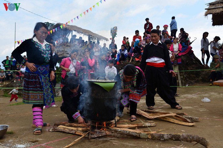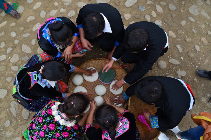 | Die Volksgruppe der Mong kocht den Day-Kuchen bei wichtigen Anlässen, darunter bei Festen von neuem Reis oder beim Fest der Feldarbeit. |