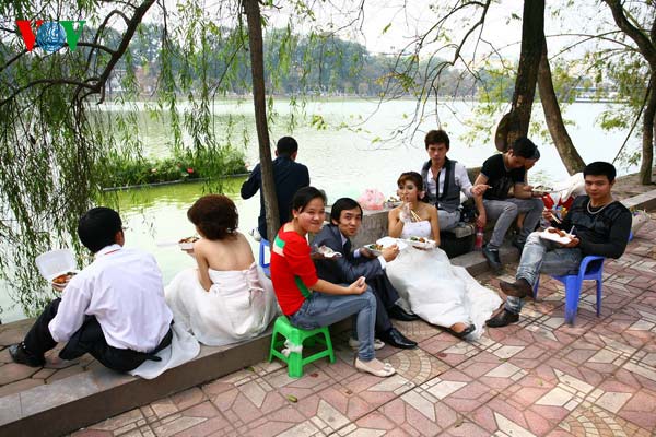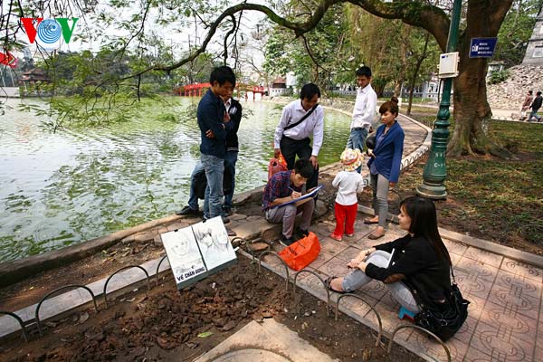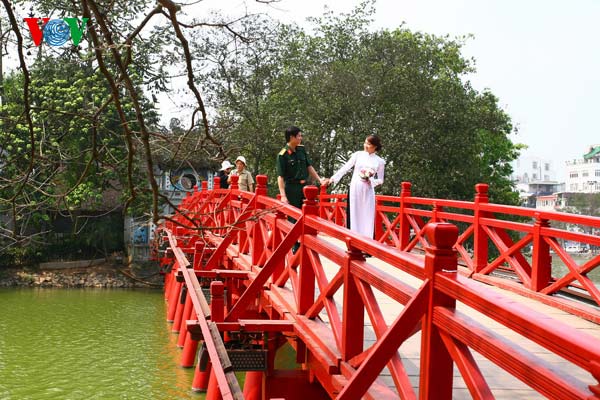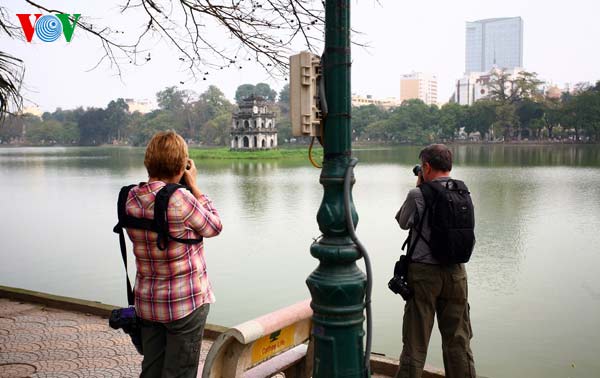 In den vergangenen Tagen erlebten die Hanoier sehr unangenehmes Wetter. Die Luftfeuchtigkeit war ungewöhnlich hoch. Am frühen Morgen war die Stadt in dichten Nebel gehüllt. Aber vor zwei Tagen kam die Sonne zurück. Die Hauptstadt und vor allem der Schwertsee erscheinen endlich wieder in einem anderen Licht. Viele Menschen gehen wieder um den Ho Guom herum spazieren. Auch ausländische Touristen haben wieder Spaß, den Schwertsee zu fotografieren. Ha Thanh hat für Sie ein paar Fotos vom Schwertsee gemacht.