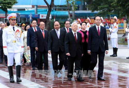 Die hochrangige vietnamesische Delegation besucht das Denkmal Lenin in Hanoi. (Foto: VNA) |