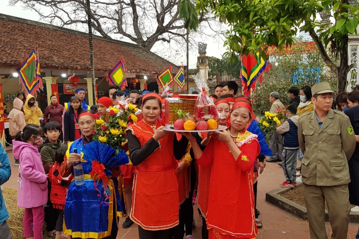 Mannschaften bringen Opfergaben zum Wettbewerb. (Foto: Ngoc Anh/VOV) |