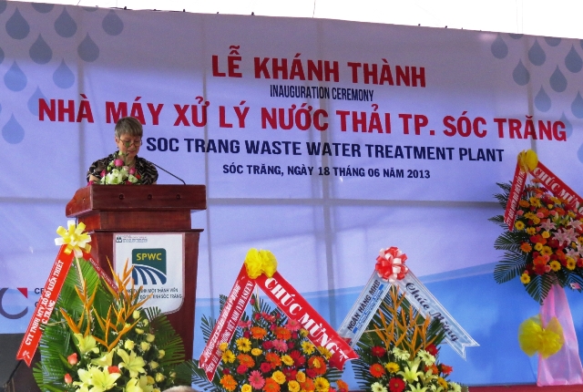 | Die deutsche Botschafterin Jutta Frasch bei der Eröffnung der Kläranlage in der Stadt Soc Trang. (Foto: Deutsche Botschaft Hanoi) |