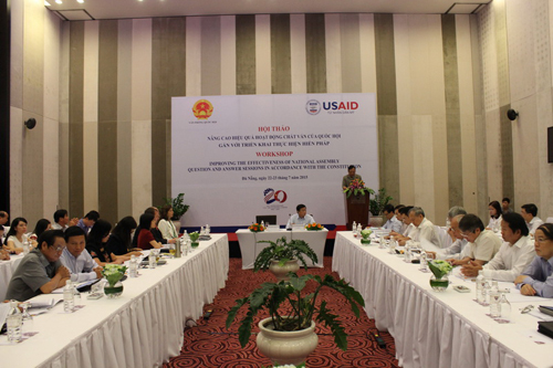 (VOVworld) – Ein Seminar zur Verbesserung der Fragestunde vor dem Parlament hat in der Küstenstadt Danang stattgefunden. Organisiert wurde es vom Parlamentsbüro. Es ist Teil der Kooperationsstrategie für die nationale Entwicklung der US-Organisation für internationale Entwicklung in Vietnam bis 2018. Die Teilnehmer bewerteten die Fragestunde vor dem Parlament und schlugen Maßnahmen vor, um die Qualität der Fragestunde zu verbessern. In einigen Vorträgen geht es um die Lage der heutigen Fragestunde und die Maßnahmen, die dazu beitragen, dass die Fragestunde der Verfassung von 2013 entspricht. Die Teilnehmer forderten die enge Kooperation zwischen den Parlamentsausschüssen und die Verbesserung der Aufsicht des Parlaments. Dazu sagte Vize-Parlamentspräsident Huynh Ngoc Son.