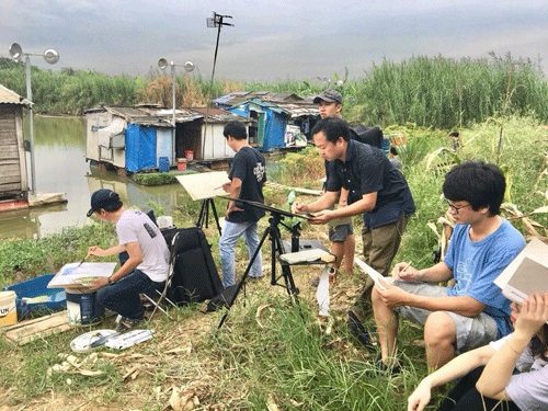 Ein Ausflug von „Urban Sketchers Hanoi“ am Roten Fluss. (Foto: hanoimoi.com.vn) |