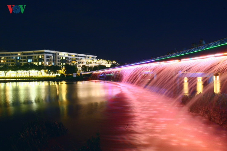 | Die Anh-Sao-Brücke. Sie ist eine Fußgängerbrücke und ein Symbol von Phu My Hung, eines der modernsten Wohngebiete in Vietnam. Die Brücke ist vor allem ein Treffpunkt der Jugendlichen. |
