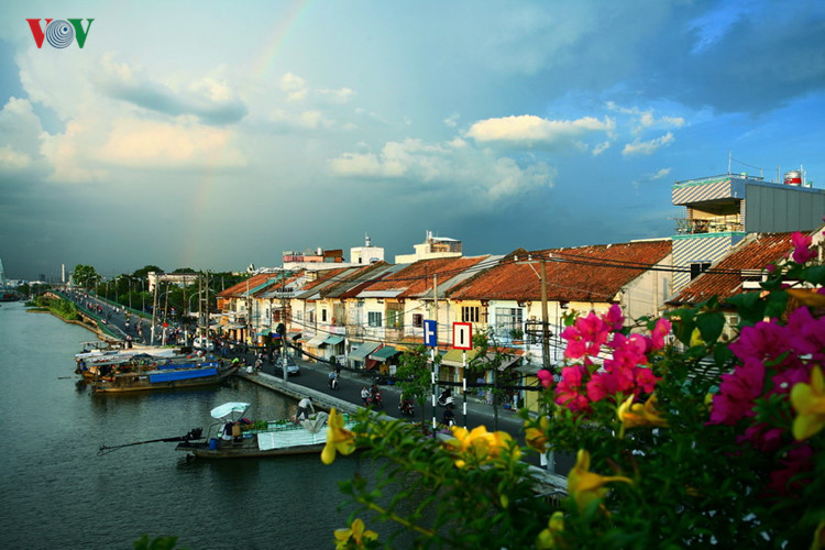 | Der Hafen Binh Dong. Das ist ein alter Hafen, welcher sich zum traditionellen Tetfest in einen schwimmenden Blumenmarkt verwandelt. |