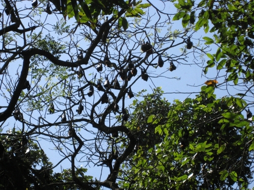 Die Fledermauspagode ist seit hundert Jahren Wohnort von tausenden großen Fledermäusen. Im Garten der Pagode hängen tausende Fledermäuse tagsüber von den Ästen der großen alten Obstbäume, essen aber nie die Früchte.