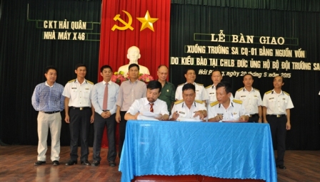 (VOVworld) – Am Mittwoch haben in der Schiffsfabrik X46 in der nordvietnamesischen Stadt Hai Phong Vertreter der in Deutschland lebenden Vietnamesen Soldaten auf Truong Sa-Inseln ein Boot geschenkt. Das Boot aus Verbundwerkstoff kostet 110.000 Euro. Im Namen des vietnamesischen Marineoberkommandos schätzte Admiral Dinh Gia That die Zuneigung der in Deutschland lebenden Vietnamesen für das Heimatland und Soldaten, die Inseln und das Meer des Landes verteidigen. Er sagte: