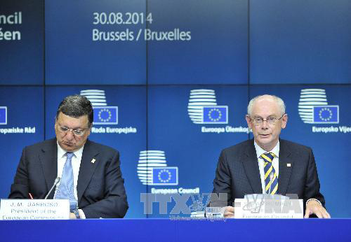 | Der Vorsitzende der Europäischen Kommission, Herman Van Rompuy (r.) bei einer Sitzung der EU. (Foto: Reuters/baotintuc.vn) |
