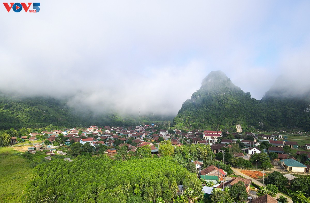 Die Gemeinde Tan Hoa liegt zwischen geschichteten Kalksteinbergen und an Mais- und Reisfeldern. Die Straße nach Tan Hoa schlängelt sich um den Fuß des Berges. Auf beiden Seiten sind Holzhäuser zu sehen, die die einfache Schönheit der friedlichen Landschaft darstellen. Hier können Besucher nicht nur die wilde Schönheit eines friedlichen Dorfes bewundern, sondern auch das Tu Lan-Höhlensystem erkunden, das aus zehn verschiedenen Höhlen mit wunderschönen und magischen Stalaktiten besteht. Im Jahr 2016 wurden hier einige wichtige Szenen des Blockbuster-Films „Kong: Skull Island“ gedreht.