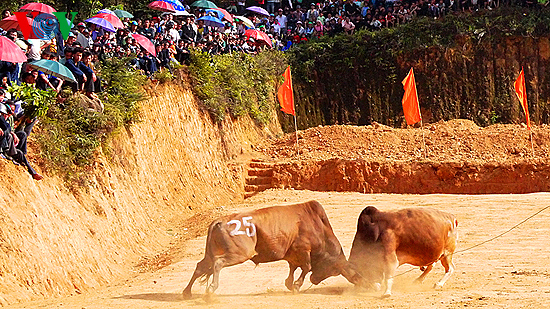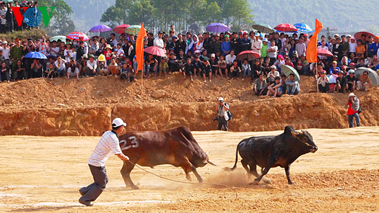 (VOVworld) – Mitte April ist in der nordvietnamesischen Bergprovinz Ha Giang die Kulturwoche des Liebesmarkts Khau Vai eröffnet worden. Während des viertägigen Programms gab es zahlreiche Aktionen, die die Kulturidentität einiger Volksgruppen des Kreises Meo Vac prägen. So auch der Rinderkampf, der zahlreiche Bewohner und Touristen aus dem In- und Ausland angezogen hat.