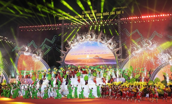 | Zahlreiche Mitglieder ethnischer Minderheiten in der Provinz Thai Nguyen und Touristen sind auf dem Vo Nguyen Giap-Platz anwesend, um die Eröffnungszeremonie zu verfolgen. (Foto: baothainguyen.vn) |