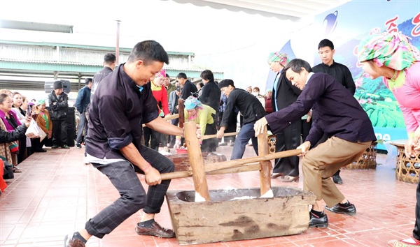 Ein Wettbewerb zum Stampfen von Day-Kuchen beim Tuti-Fest in Lai Chau. (Foto: Thu Hoai) |
