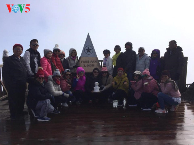 | Falls die Temperatur niedrig bleibt, können Touristen das Eis auf dem Fansipan am frühen Morgen sehen. |