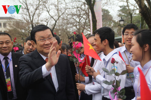 | Staatspräsident Truong Tan Sang nimmt an der Feier zum 40. Gründungstag der Eliteschule Phan Boi Chau in Nghe An teil. |