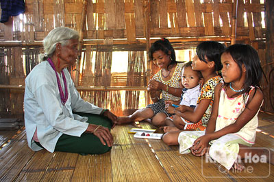 Das ist die Stimme von Katơ Thị Sính bei der Erzählung des Epos “Udai”, in dem es um den Krieg sowie die Liebe geht. Dies ist eines der zwei langen typischen Epen der Raglai. Im Alter von 60 kann Katơ Thị Sính die ganze Geschichte genau erzählen. Sie sagt, dass sie bereits im Alter von sieben das Erzählung der Epen gelernt habe. Zum Beispiel zu Hause, im Wald sowie bei der Feldarbeit oder in der Freizeit, sagt Katơ Thị Sính: