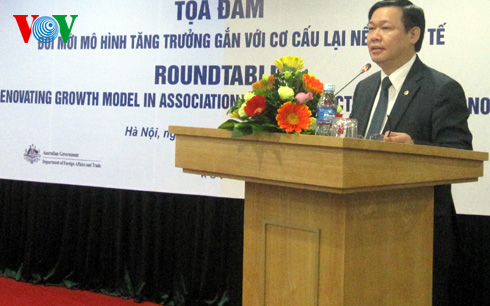 (VOVworld) – In Hanoi haben das Wirtschaftskomitee der KPV, der staatliche Rechnungshof und die Volkszeitung „Nhan dan“ eine Diskussion zum Thema „Erneuerung des Wachstumsmodells und Umstrukturierung der Wirtschaft im Zeitraum 2016 bis 2020“ veranstaltet. Zum Auftakt der Veranstaltung betonte der Leiter des Wirtschaftskomitees der KPV Vuong Dinh Hue, eine der Hauptaufgaben zur Entwicklung des Landes von 2011 bis 2015 liegen darin, die Makrowirtschaft zu stabilisieren, das Wachstumsmodell zu erneuern und die Umstrukturierung der Wirtschaft fortzusetzen. Von 2011 bis 2013 habe sich das Wirtschaftswachstum Vietnams beachtlich verbessert. Jedoch sollen die beteiligten Behörden praktische Argumentation haben, um das Zentralkomitee, das Politbüro, das Sekretariat bei diesem Thema zu beraten.