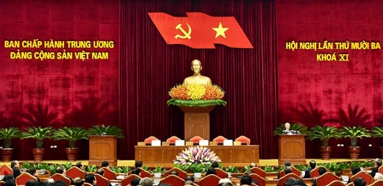 Am Montagnachmittag tagten die ZK-Mitglieder im Saal unter der Leitung des Premierministers Nguyen Tan Dung. Politbüromitglied To Huy Rua gab Berichte bekannt, die die Meinungen der 13. ZK-Sitzung über die Personalfrage des Zentralkomitees, des Politbüros sowie des Sekretariats der kommenden Legislaturperiode gesammelt haben. Auch die Kandidaten für die vier wichtigsten Posten sowie die geplante Liste der Mitglieder des Präsidiums und des Sekretariats des 12. Parteitags wurden in den Berichten erwähnt.