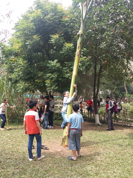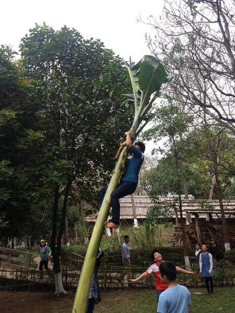 | Ein anderes Spiel, das auch beliebt ist, ist “Klettern auf den Bananenbaum”. |
