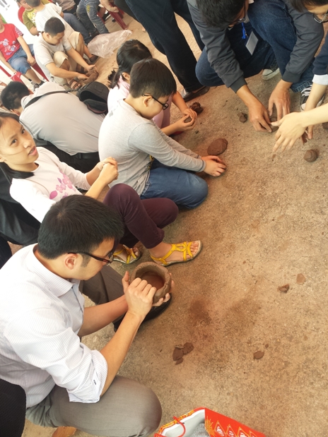 | Die Kinder und ihre Eltern gestalten “phao dat”, also ein Gegenstand aus Ton, der einen lauten Knall macht, wenn man ihn auf den Boden wirft. |