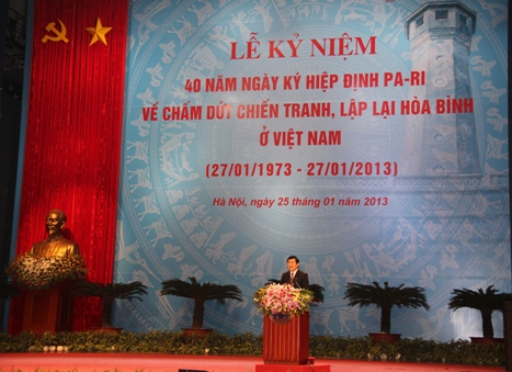 Während der Feierlichkeiten betonte Staatspräsident Truong Tan Sang, das Pariser Abkommen sei ein großer Impuls für die Menschen, die den Frieden lieben und den Vietnamesen bei ihrem langjährigen Kampf sowie bei den Verhandlungen für das Pariser Abkommen geholfen haben. Mit dem Pariser Abkommen wurde nicht nur der Krieg in Vietnam beendet, sondern auch eine neue Phase in Südostasien eingeleitet, in der die Länder der Region sich annäherten. Das Pariser Abkommen sei ein großer Sieg der Vietnamesen im Kampf gegen die Amerikaner und ein Meilenstein in der Geschichte der vietnamesischen auswärtigen Angelegenheiten.