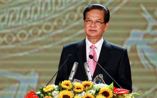 | Premierminister Nguyen Tan Dung redet in der Feier. |