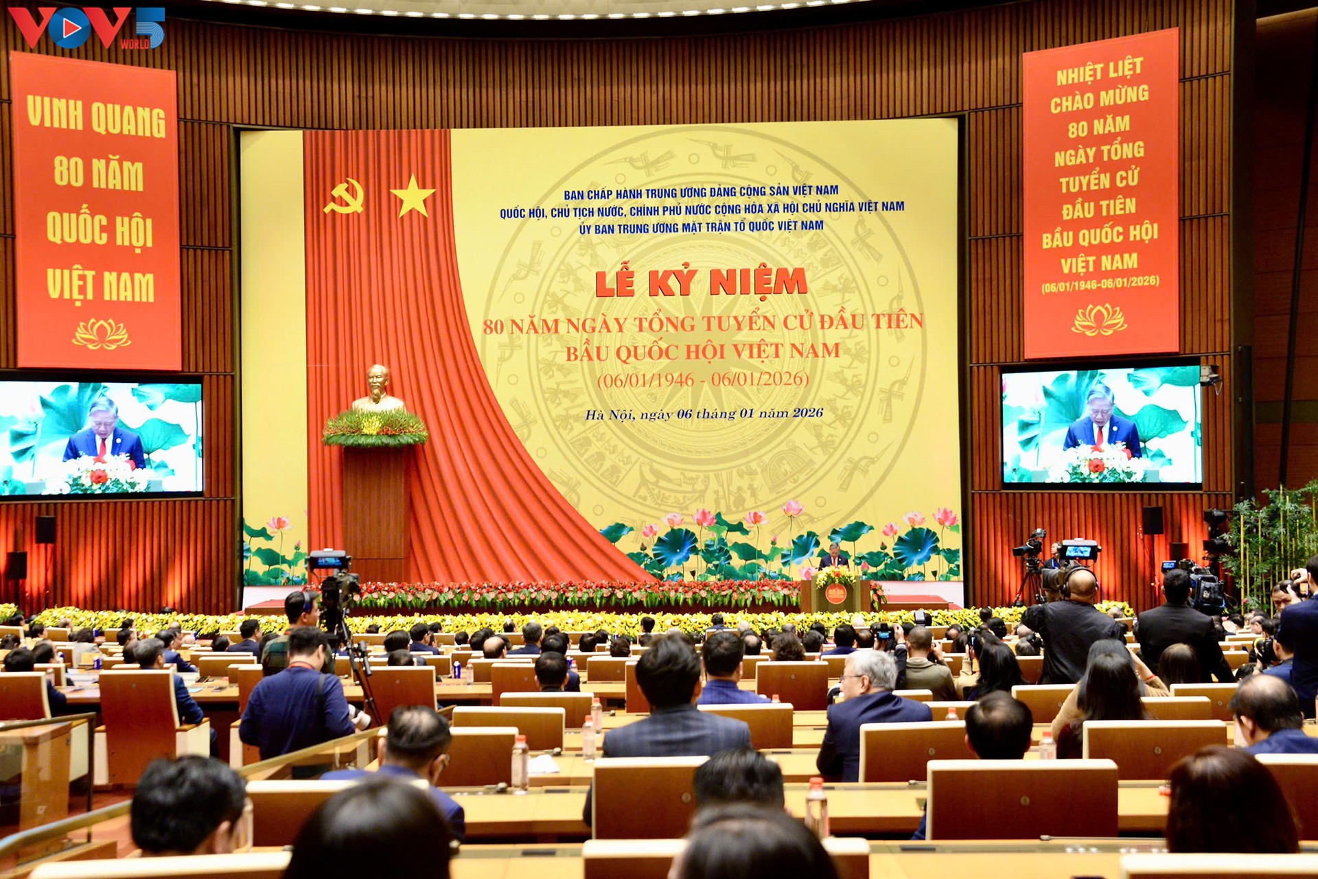 KPV-Generalsekretär To Lam, Staatspräsident Luong Cuong, Premierminister Pham Minh Chinh und Parlamentspräsident Tran Thanh Man nahmen an der Feier teil. In seiner Rede bekräftigte KPV-Generalsekretär To Lam, dass das historische Ereignis vom 6. Januar 1946 zu einem glorreichen Meilenstein geworden sei und den ersten großen Schritt in der Entwicklung der demokratischen Institutionen des neuen vietnamesischen Staates markiere. Die erste Parlamentswahl habe auch eine große Wahrheit bestätigt: Die Staatsmacht gehört dem Volk. Der KPV-Generalsekretär hob die Rolle des vietnamesischen Parlaments beim Aufbau und der Vervollkommnung des sozialistischen vietnamesischen Rechtsstaats hervor:
