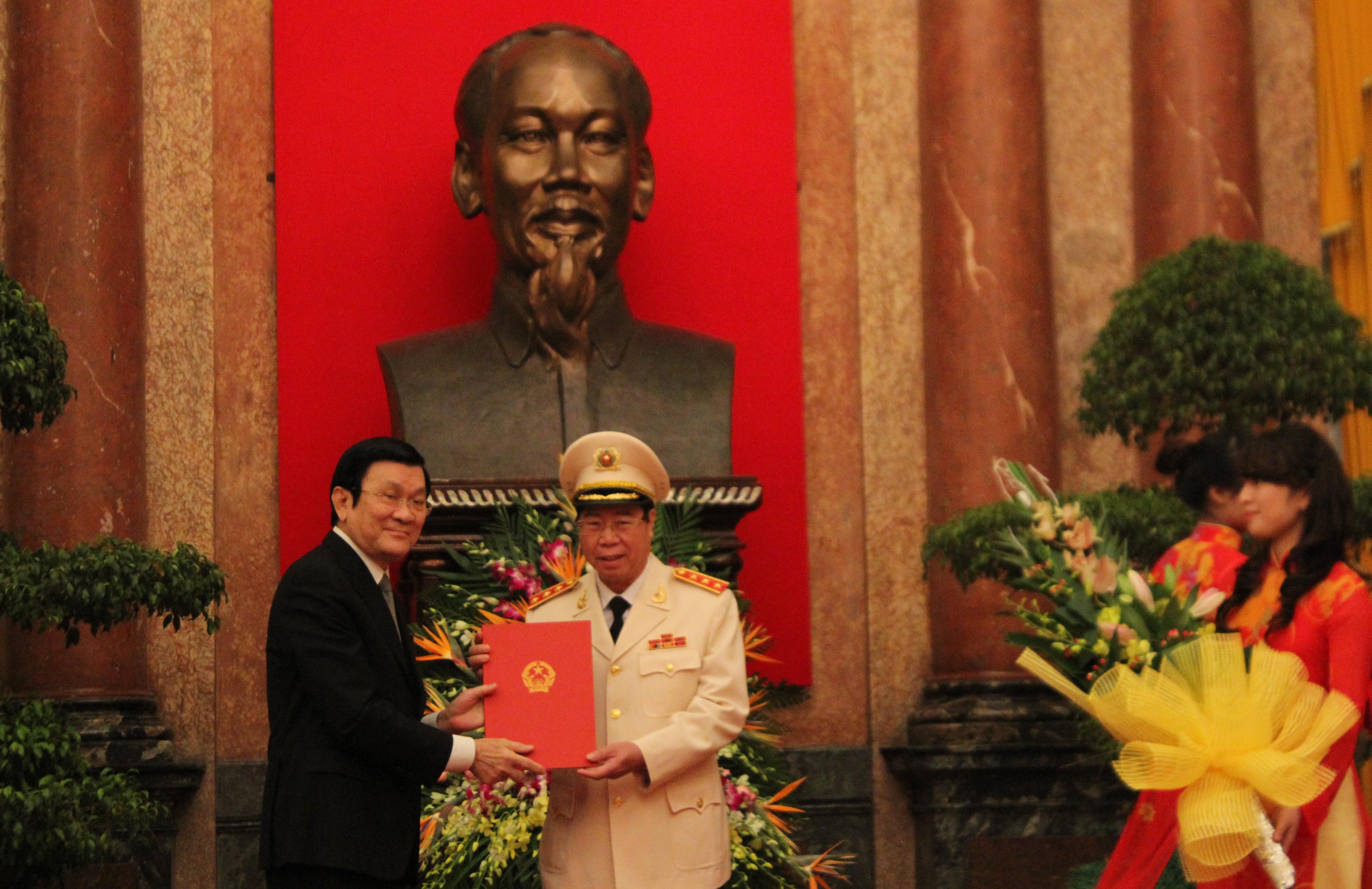 | Staatspräsident Truong Tan Sang und Polizeigeneral Bui Van Nam. |