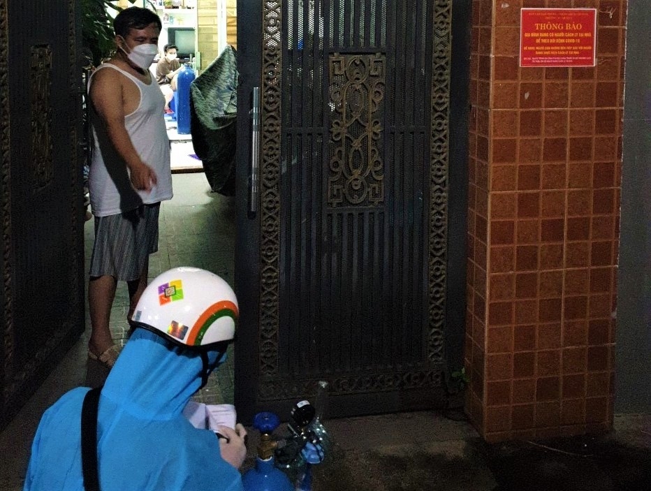 Seit mehr als zwei Wochen beteiligt sich Nguyen Minh Duc, ein 12-Klässler der Oberschule Nguyen Huu Tho, freiwillig am Unterstützungsteam für kostenlose Sauerstofftanks des Jugendverbands des Bezirks 4 in Ho-Chi-Minh-Stadt. Er ist der Jüngste des Teams. Aber sein Enthusiasmus ist nicht geringer als die der anderen Mitglieder. Duc infizierte sich Ende Juli mit Covid-19. Er isolierte sich in einem Privatzimmer zu Hause und befolgte die Behandlungsanweisungen des Arztes. Nach etwa zehn Tage war er wieder gesund. Während der nächsten 14 Tage der Selbstisolation las Duc Artikel über ehemalige Covid-19-Patienten, die als Freiwillige in Krankenhäusern blieben, sodass der Schüler einen Antrag auf Freiwilligenarbeit beim Jugendverband des Bezirks 4 einreichte. Hier wurde er mit Schutzausrüstung ausgestattet und darin geschult, einen Sauerstofftank zu halten, einen Tank zu installieren und ihn zu bergen. Schnell hat er sich integriert und es hat auf Anhieb funktioniert. Wenn jemand die Hotline anruft, bringt der Schüler Sauerstofftanks zu den Patienten. Als Bewohner von Bezirk 4 kennen sich Duc und seine Teammitglieder mit den Straßen und Gassen in der Gegend gut aus, sodass die Sauerstofftanks sehr schnell an die Bedürftigen geliefert werden. Nguyen Minh Duc sagte: